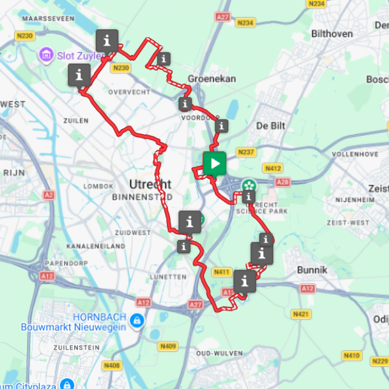 Onderweg kom je op de route verzorgingsposten tegen! Hier heb je de mogelijkheid om even uit te rusten en wat eten/drinken te pakken. Onder andere vind je hier krentenbollen, fruit, water en sportdrank van Powerbar. We proberen de verzorgingsposten om de ongeveer 40 km te plaatsen.